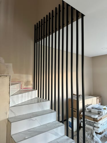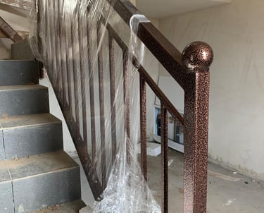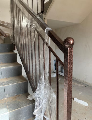 Black steel railings were designed, manufactured, and installed. The handrail profile is 50×50×2 mm, and the infill profile is 40×40×3 mm. The railings were primed and powder coated for protection and durability.